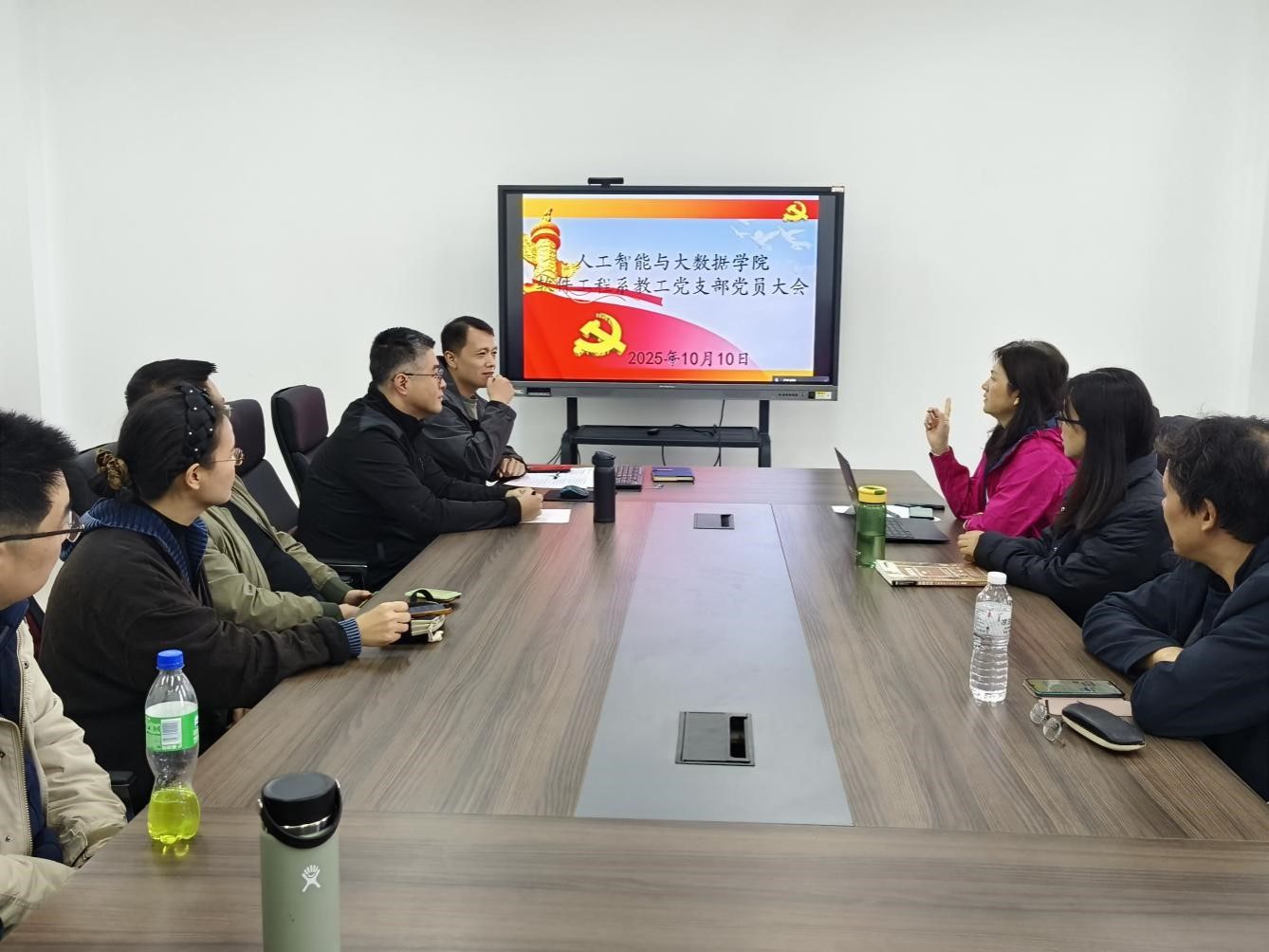 10月10日,软件工程系教工党支部在“双带头人”工作室6337房间召开党员大会,会议由党支部书记程凤娟主持。